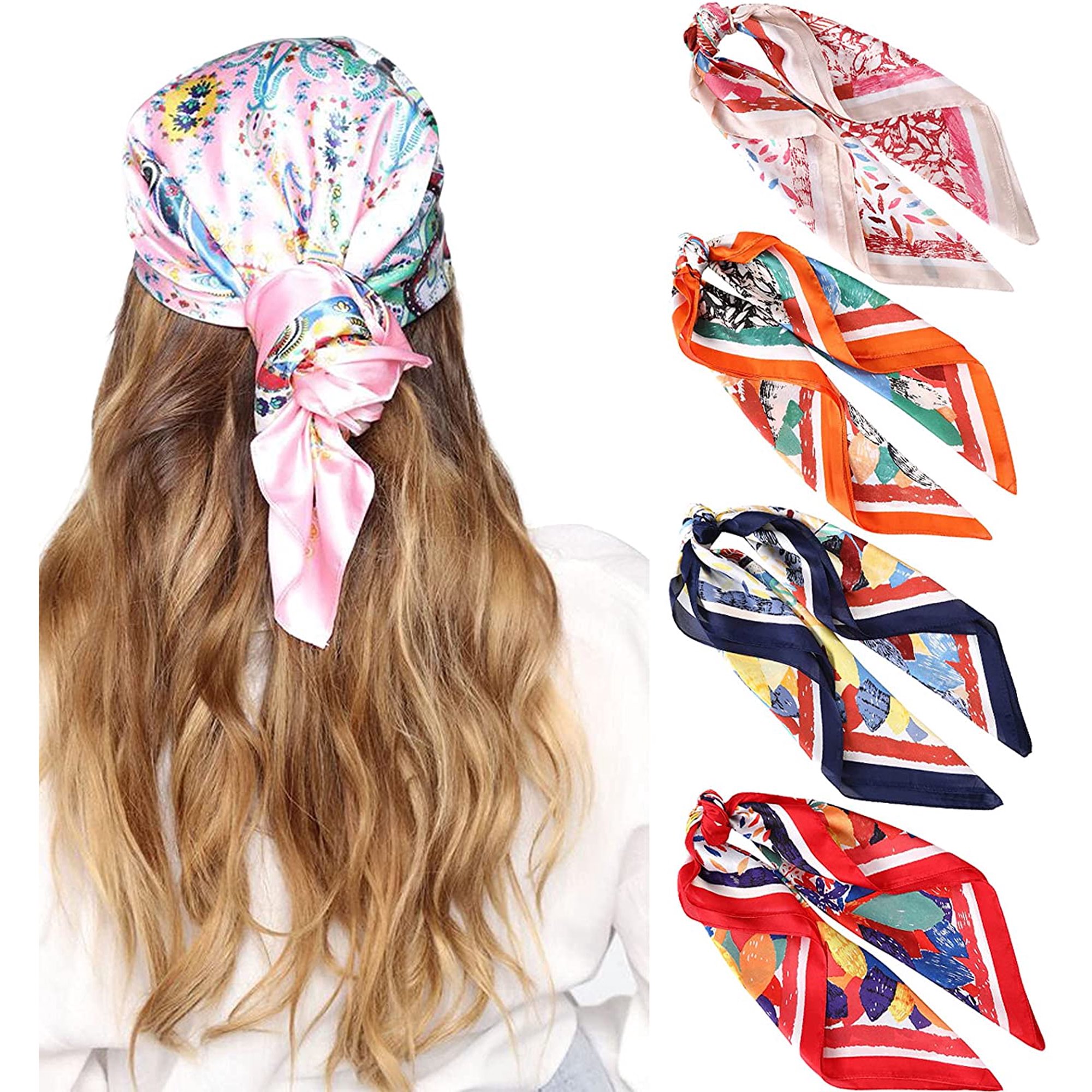 27 Inches Silk Feeling Square Head Scarf 4 Pcs Satin Square Head Scarves For Women Hair Bandanas Walmart Canada