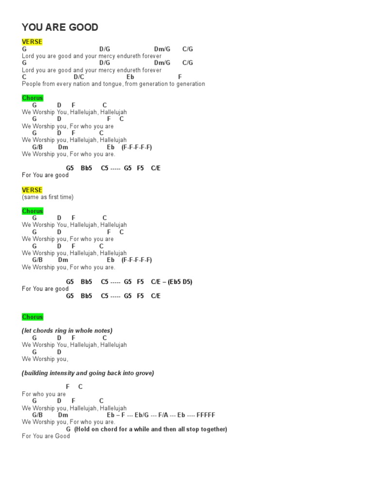Lord You Are Good Chords Pdf Song Structure Musical Forms