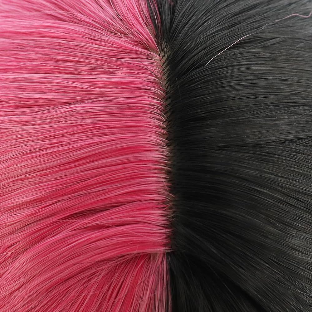 Amazon Com Anogol Hair Cap Half Pink Half Black Wig Long Body Wave Wig With Bangs For Women Synthetic Wig For Halloween Costume Cosplay Party Beauty Personal Care